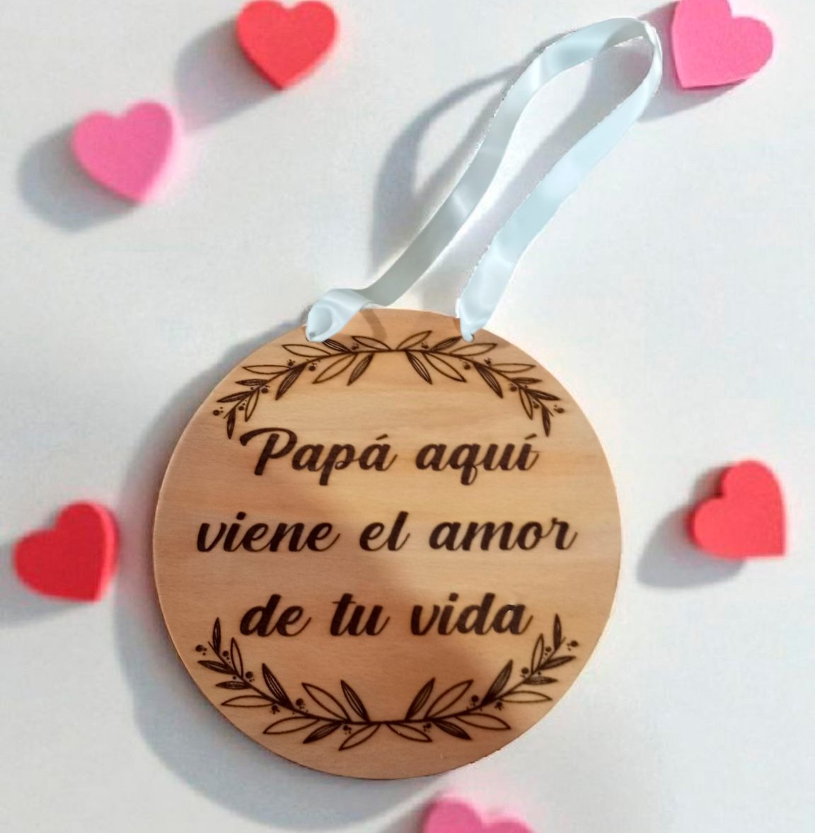 Placa de madera textura haya grabada para ceremonias con frase personalizada para dar la bienvenida al altar. Diseño ligero, ideal para niños pequeños. Perfecta para fotos y como recuerdo para un día tan especial.
